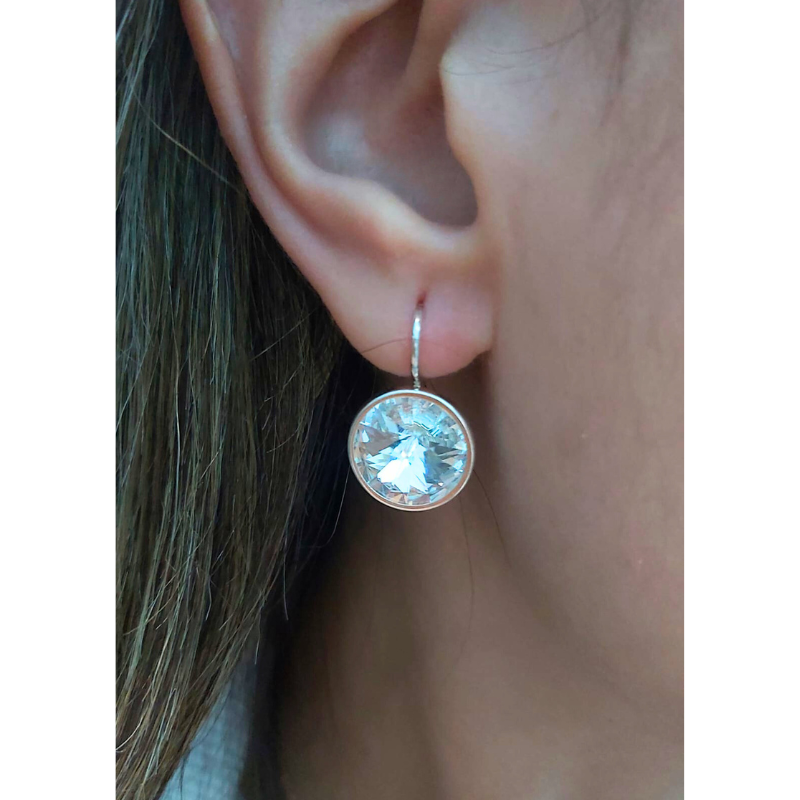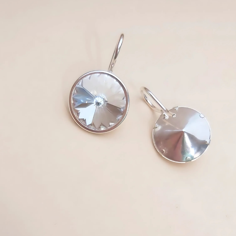 Os enseñamos en la imagen secundaria un ejemplo con nuestro gancho para rívoli de 14mm. Colocarlo es muy fácil, sólo hay que encajarlo en la base y bajar las patitas con cuidado con un alicate para no arañar la base del pendiente.