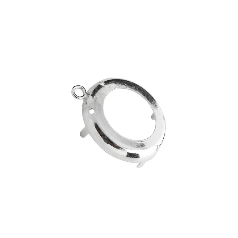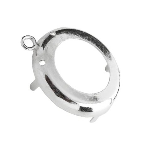 Garra redonda con anilla en plata de ley. La bolsa contiene 1 unidad. El diámetro es de 20 mm. y es para Swarovski 4264.