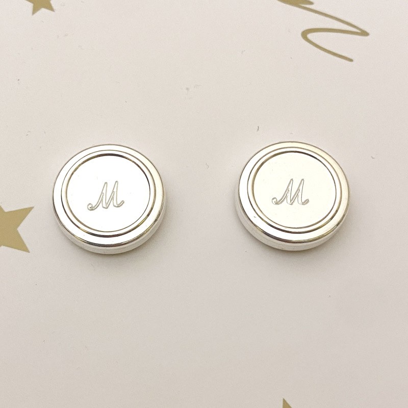 Cubre botones en plata de ley 925 estándar para todas las medidas. Estos cubre botones se pueden grabar y personalizar como más os guste.