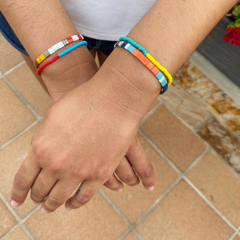 Las cuentas de media tila de la marca Miyuki son las cuentas japonesas de alta calidad de vidrio en forma rectangular con dos agujeros internos en los extremos. Son exactamente la mitad de las cuentas tilas. Las cuentas son muy precisas y con un calibrado excelente. Además, su taladro permite pasar varias veces el hilo.