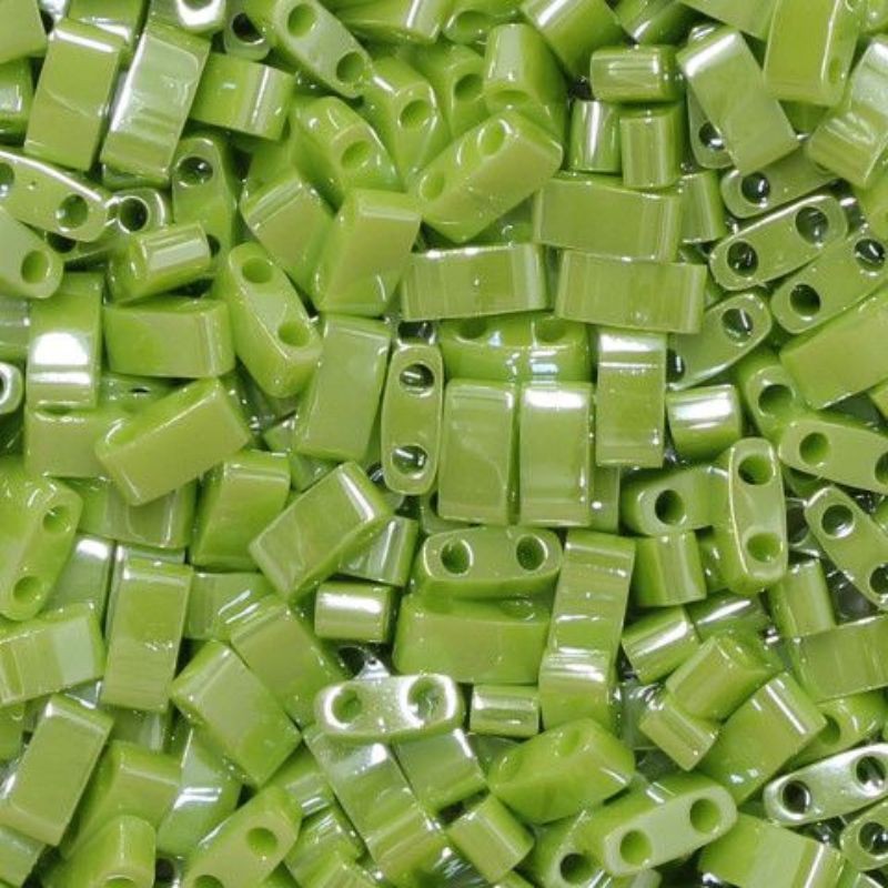 Las cuentas de media tila de la marca Miyuki son las cuentas japonesas de alta calidad de vidrio en forma rectangular con dos agujeros internos en los extremos. Son exactamente la mitad de las cuentas tilas. Las cuentas son muy precisas y con un calibrado excelente. Además, su taladro permite pasar varias veces el hilo.