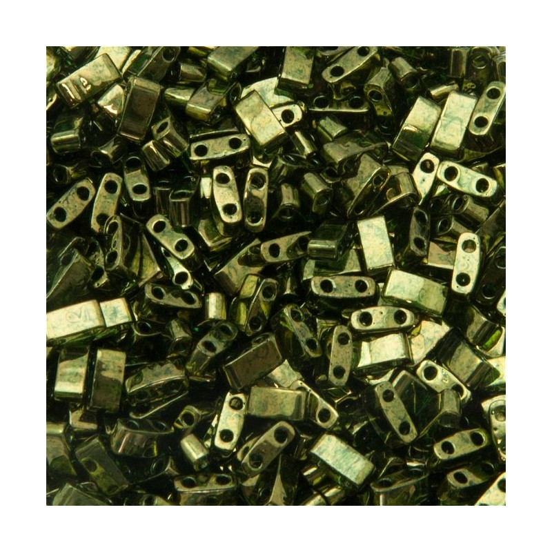Las cuentas de media tila de la marca Miyuki son las cuentas japonesas de alta calidad de vidrio en forma rectangular con dos agujeros internos en los extremos. Son exactamente la mitad de las cuentas tilas. Las cuentas son muy precisas y con un calibrado excelente. Además, su taladro permite pasar varias veces el hilo.