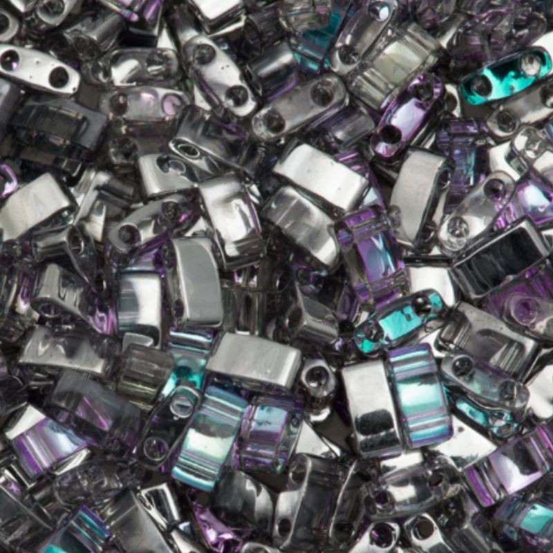 Las cuentas de media tila de la marca Miyuki son las cuentas japonesas de alta calidad de vidrio en forma rectangular con dos agujeros internos en los extremos. Son exactamente la mitad de las cuentas tilas. Las cuentas son muy precisas y con un calibrado excelente. Además, su taladro permite pasar varias veces el hilo.