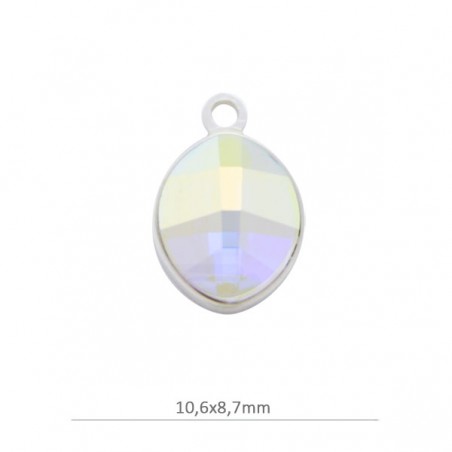 - Colgante hoja en plata con cristal de Swarovski. - El tamaño es de 10,6x8,7 milímetros. - El cristal está incluido en el precio. - El precio es por unidad.