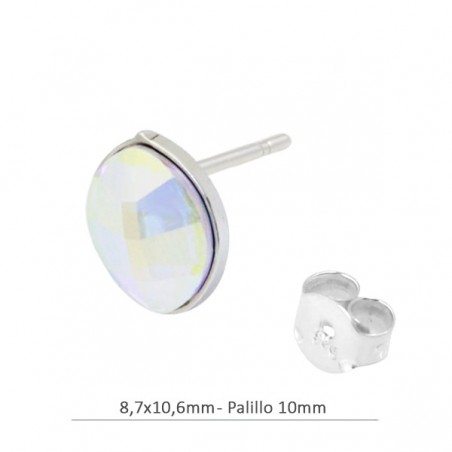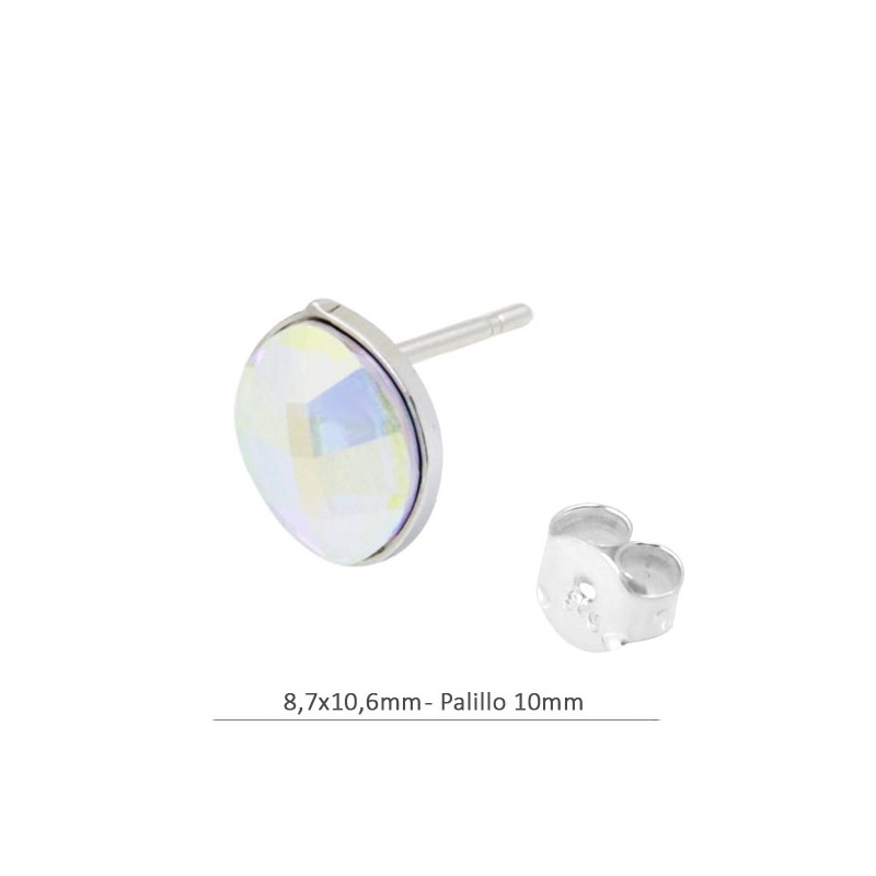 - Pendientes hoja en plata con cristal de Swarovski. - El tamaño es de 10,6x8,7 milímetros y el palillo es de 10 milímetros. - Los cristales y las presiones están incluidos en el precio. - El precio es por bolsa y la bolsa incluye 2 unidades.