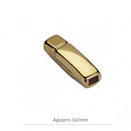 Cierre liso con imán en zamak con baño de oro. La bolsa contiene 1 unidad. El tamaño es de 3x2 mm.