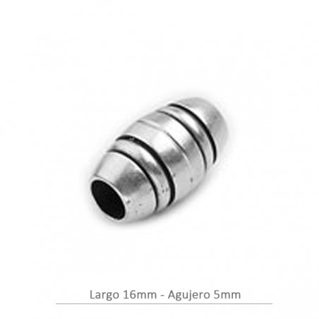 - Cierre imán labrado para cuero de 5mm. Baño plata. El tamaño es de 16mm y el agujero es de 5 milímetros. - El precio es por unidad.