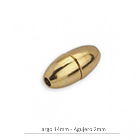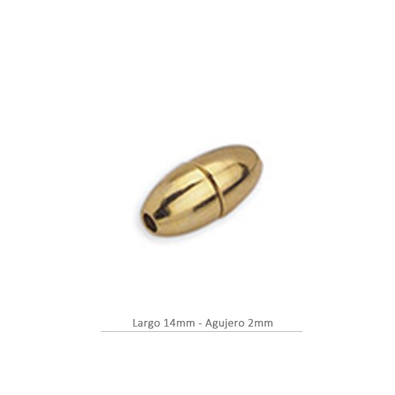 - Cierre imán liso cuero de 2mm. Baño oro. El tamaño es de 14mm y el agujero es de 2 milímetros. - El precio es por unidad.