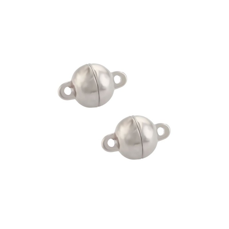 Cierre de imán redondo de cobre lacado en plateado de 8mm de diámetro.