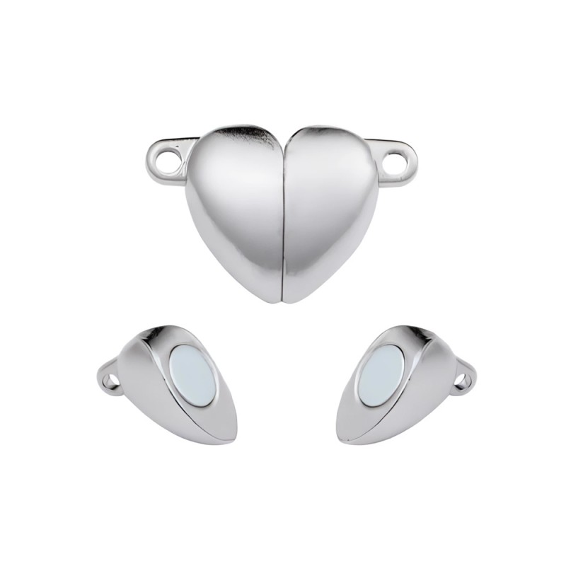 Cierre de imán en forma de corazón de cobre lacado en plateado mate de 10,8 mm.