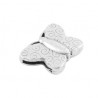 Cierre imán con forma de mariposa en zamak con baño de plata. La bolsa contiene 1 unidad. El tamaño es de 28x21 mm. y el taladro es de 15x2,5 mm.