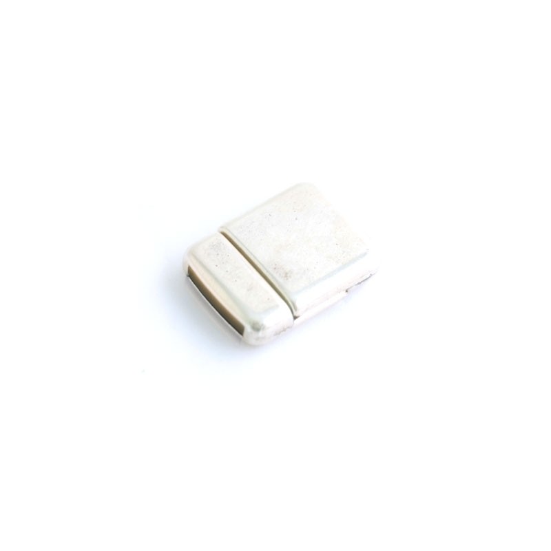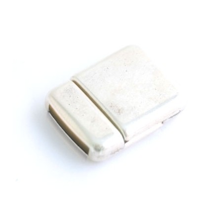 Cierre pulsera de zamak con baño de plata. La bolsa contiene 1 unidad. El tamaño es de 23X18 mm. y tiene un taladro interior de 12X2.5 mm.