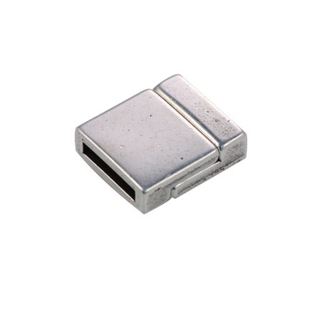 Cierre imán rectangular con taladro grande,en zamak con baño de plata. La bolsa contiene 1 unidad. El tamaño es de 21-5 x 18 mm con taladro de 12.5 x 2.5