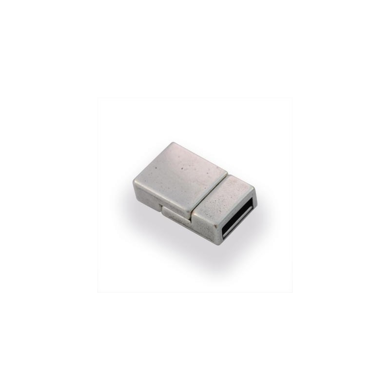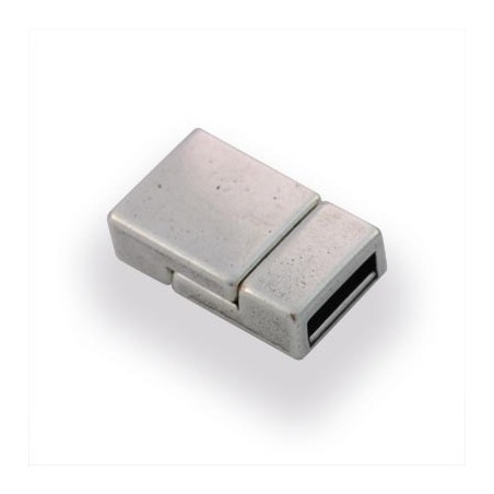 Cierre zamak imán rectangular con taladro grande. El tamaño es de 21x13 mm. y tiene un taladro interior de 10x2.5 mm.