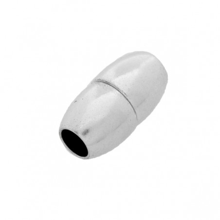 - Cierre imán ovalado de zamak con baño de plata. - El tamaño es de 14,30 mm y el agujero es de 4 milímetros. - El precio es por unidad.