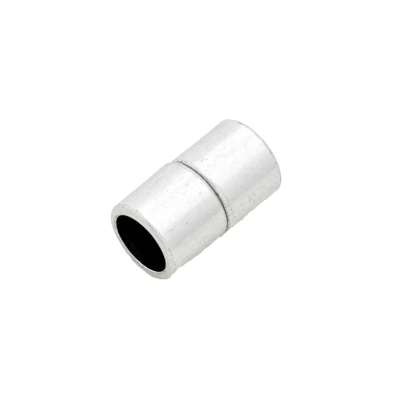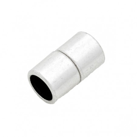 - Cierre imán cilíndrico de zamak con baño de plata. - El tamaño es de 14x8mm y el agujero es de 6 milímetros. - El precio es por unidad.