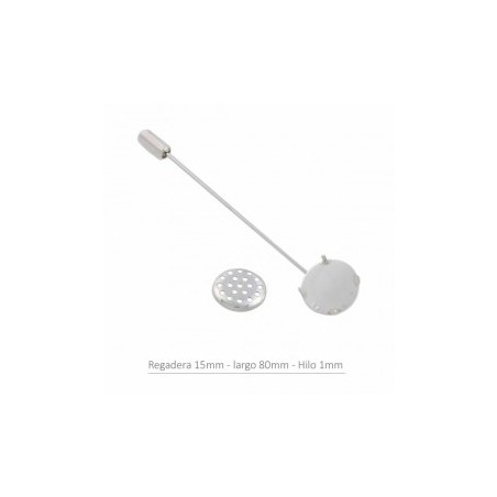 Pincho con disco colador y tapón, en plata de ley. La bolsa contiene 1 unidad. El largo es de 68 mm. y el diámetro del disco es de 14 mm.