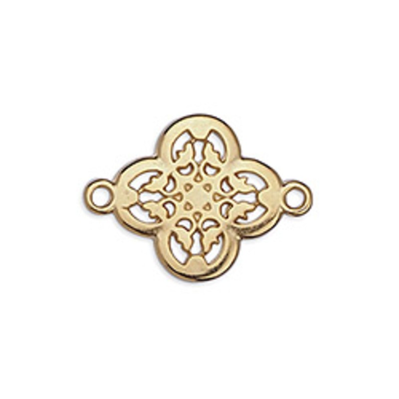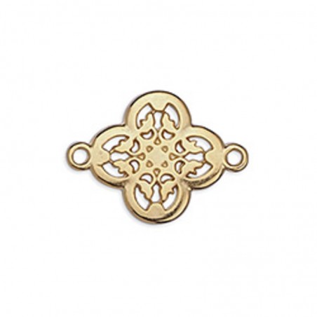 Entrepieza dos agujeros Flores de 20 x 15 mm. Baño oro