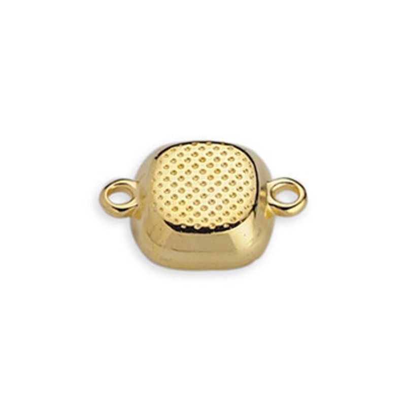 Entrepieza con dos asas en zamak con baño de oro para cristal cabuchón de 10 mm (el cristal no viene incluído). Le recomendamos pegar ambas piezas con nuestro pegamento especial para joyería con referencia 7405.