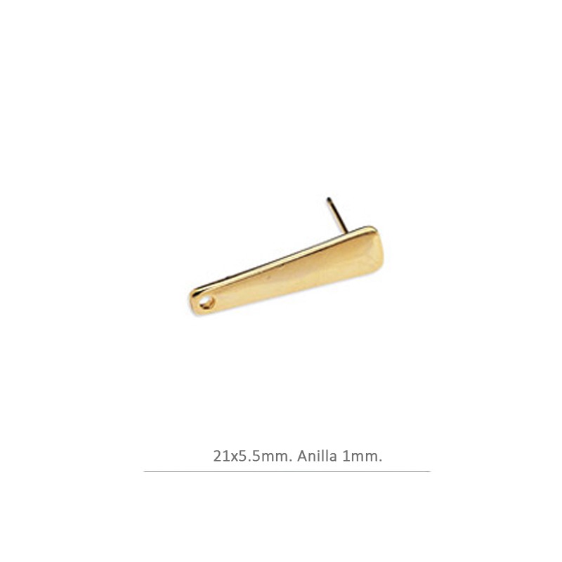 Pendientes barra de 21x5,5 mm en zamak con baño de oro. La bolsa contiene 2 unidades e incluye presiones.