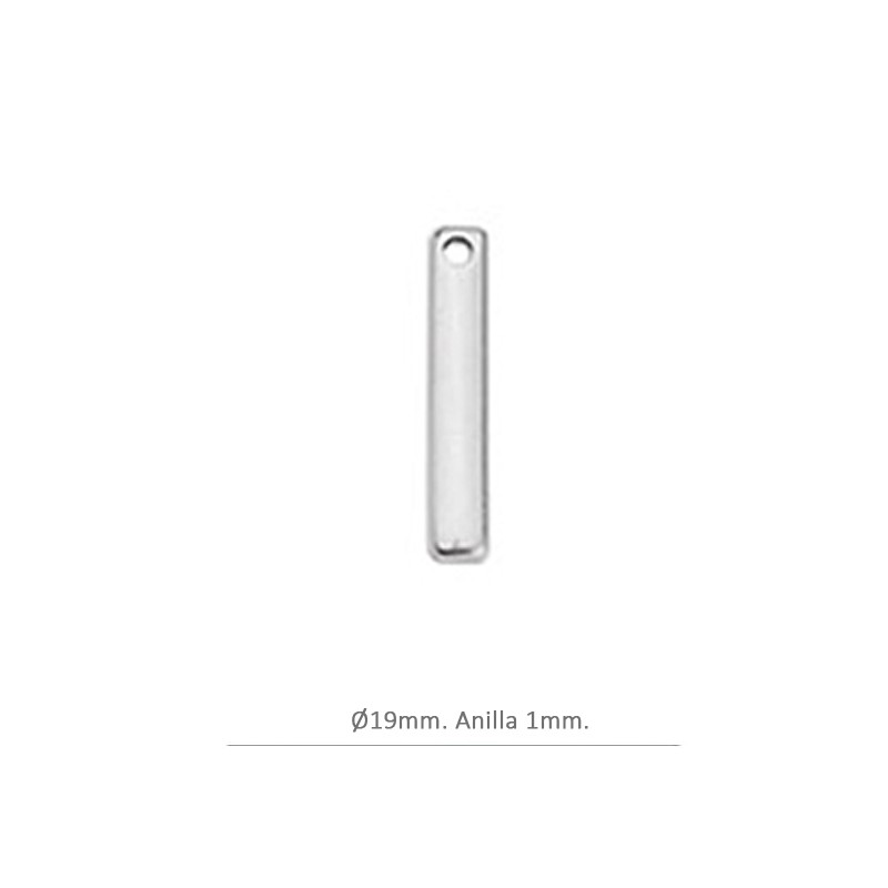 Entrepieza para pendientes con forma de barra de 19 mm en zamak con baño de plata. La bolsa contiene 6 unidades.