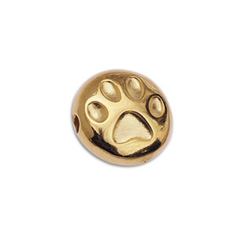 - Huella de perro en zamak con baño de oro. - El diámetro es de 10 milímetros y el taladro interior es de 1.5 milímetros. - El precio es por bolsa y la bolsa contiene 2 unidades