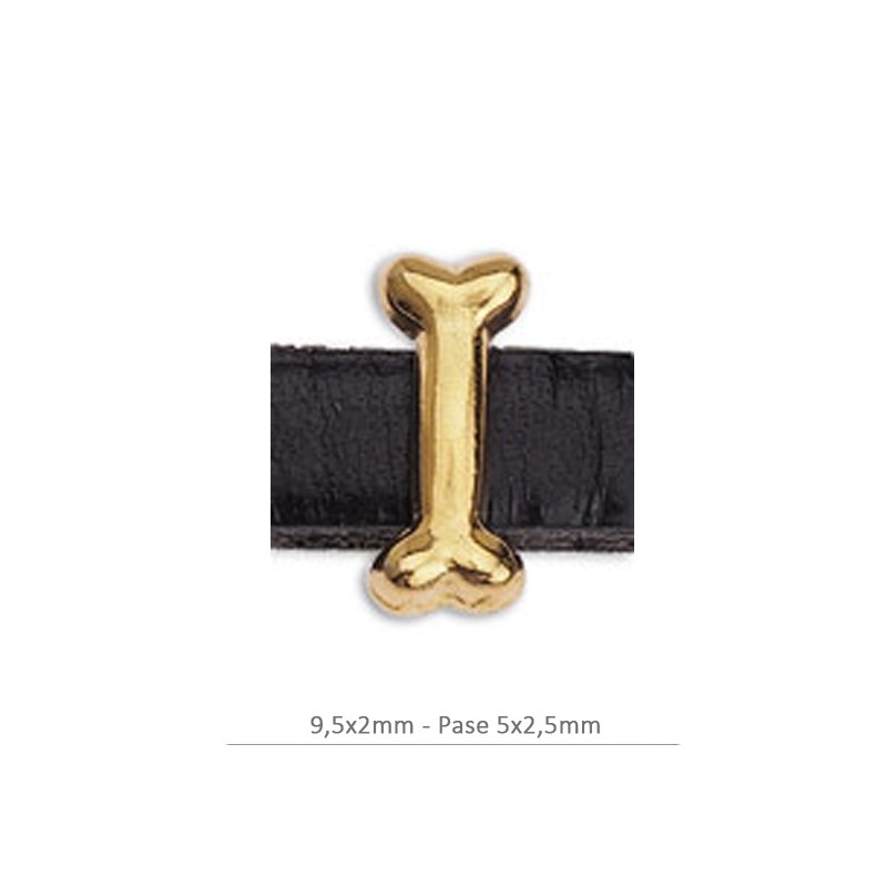 Entrepieza hueso para cuero plano de 5x2,5mm. Zamak baño oro