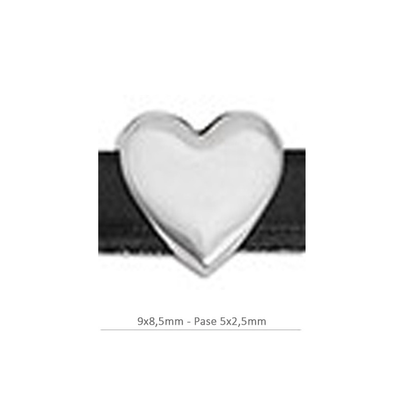 Entrepieza corazón para cuero plano de 5x2,5mm. Zamak baño plata