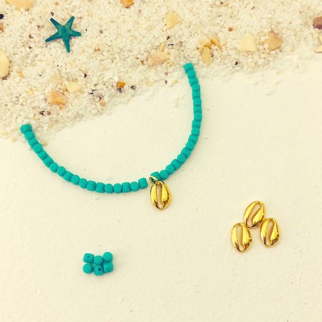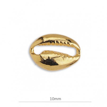 Entrepieza mini concha de 10mm. Zamak bañado en oro. Precio por bolsa, cada bolsa contiene cuatro unidades.