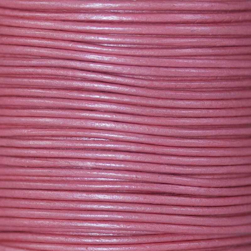 - Cuero redondo de 1 mm de grosor en color fuchsia. Este cuero es muy suave y flexible siendo ideal para hacer nudos o bien para llevar pulseras y colgantes muy finos.