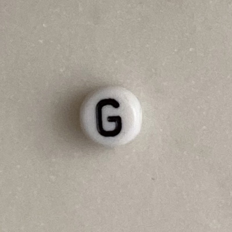 Cuenta Letra G. Diámetro 8mm. Taladro 1mm