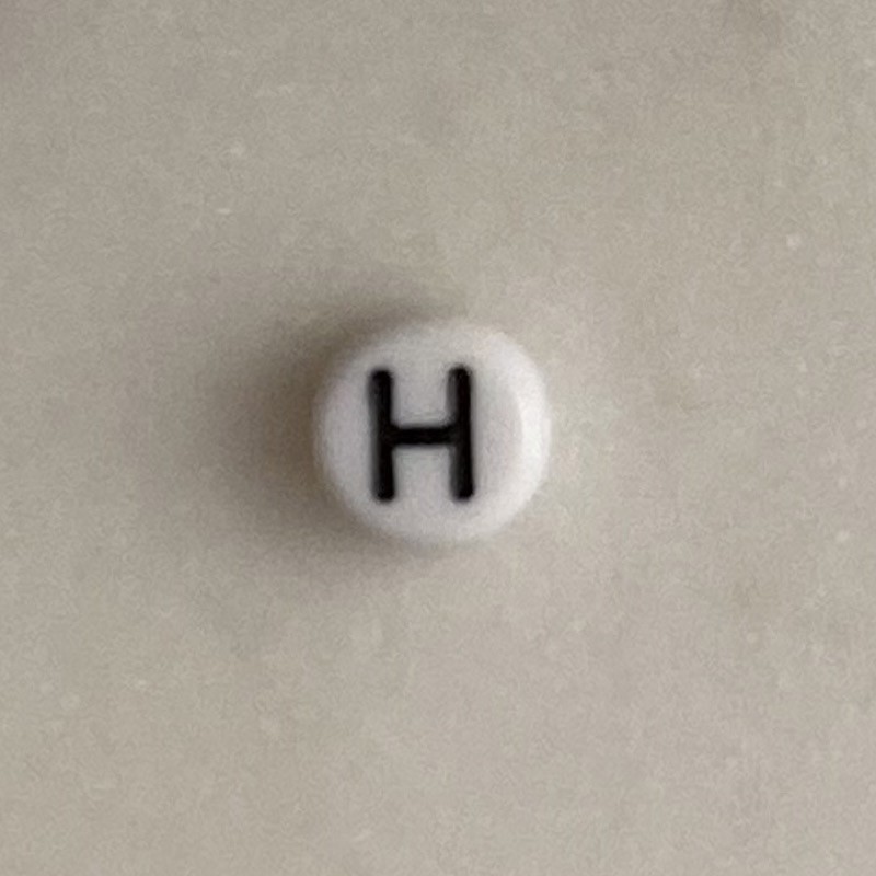 Cuenta Letra H. Diámetro 8mm. Taladro 1mm