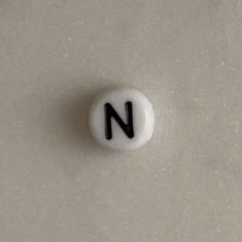 Cuenta Letra N. Diámetro 8mm. Taladro 1mm