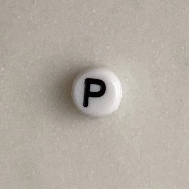 Cuenta Letra P. Diámetro 8mm. Taladro 1mm