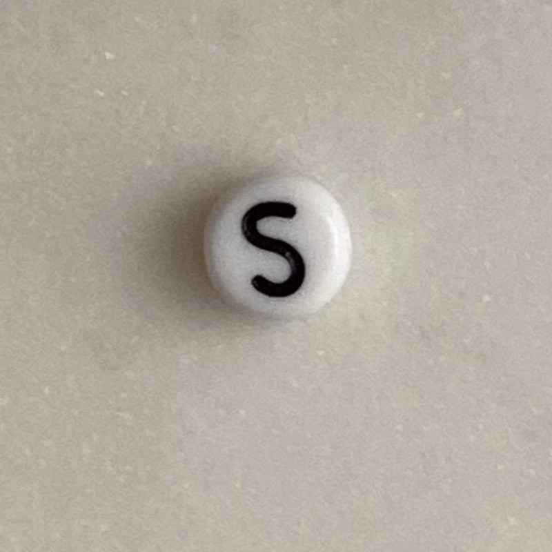 Cuenta Letra S. Diámetro 8mm. Taladro 1mm