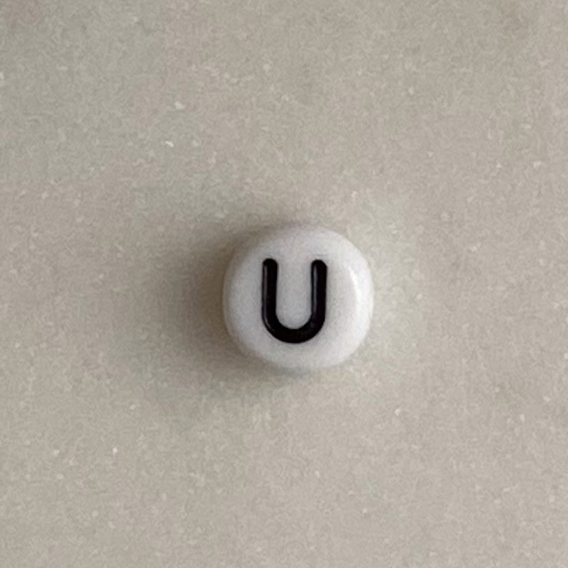 Cuenta Letra U. Diámetro 8mm. Taladro 1mm