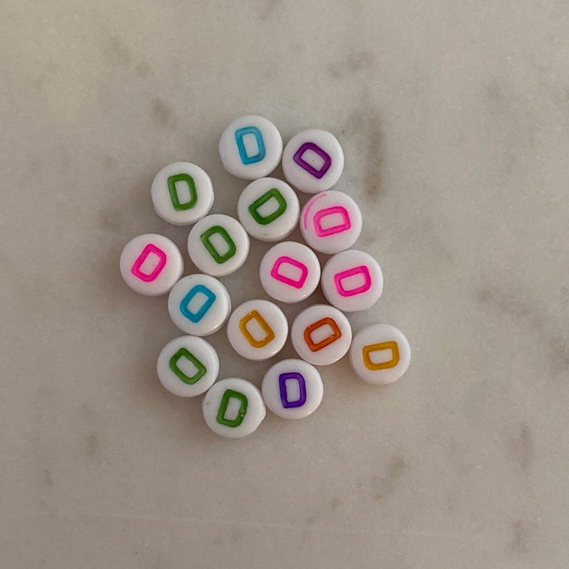 Cuenta de color letra D de plástico. Venta por bolsa, la bolsa contiene 1 unidad.