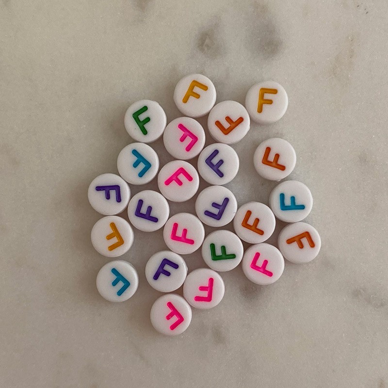 Cuenta de color letra F de plástico. Venta por bolsa, la bolsa contiene 1 unidad.