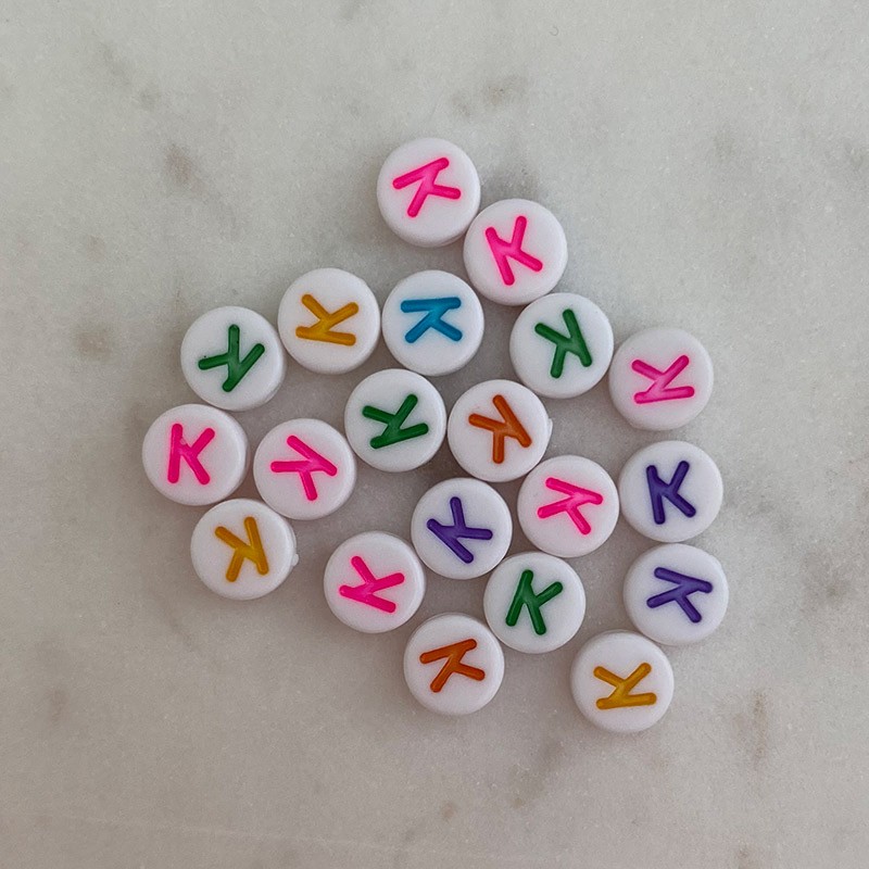 Cuenta de color letra K de plástico. Venta por bolsa, la bolsa contiene 1 unidad.