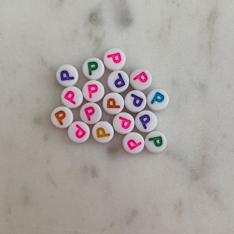 Cuenta de color letra P de plástico. Venta por bolsa, la bolsa contiene 1 unidad.