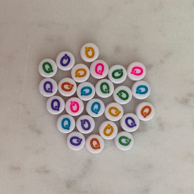 Cuenta de color letra Q de plástico. Venta por bolsa, la bolsa contiene 1 unidad.