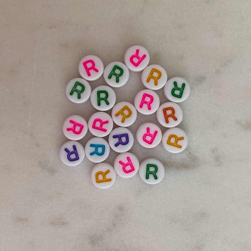 Cuenta de color letra R de plástico. Venta por bolsa, la bolsa contiene 1 unidad.
