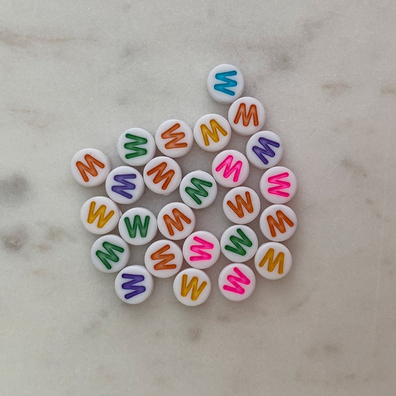 Cuenta de color letra W. Diámetro 8mm. Taladro 1mm