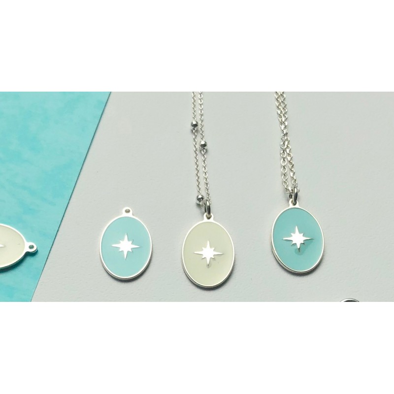 * Colgante ovalado estrella polar esmaltado en blanco en plata o en baño oro según elección