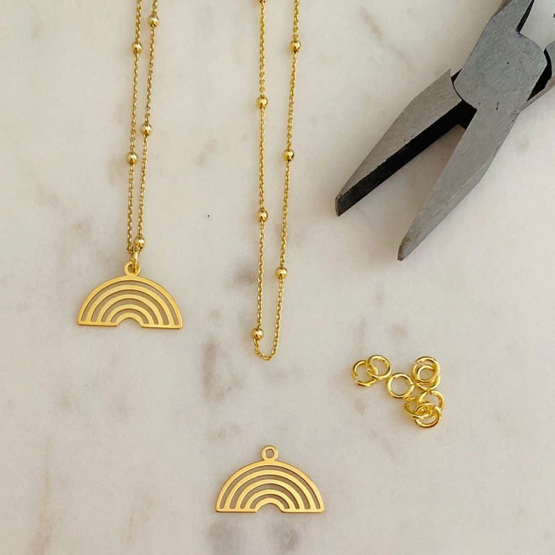 Crea tu propio colgante arco iris en plata de ley 925 o en plata de ley 925 bañado en oro de 18k. Todos los materiales son fabricados en España.