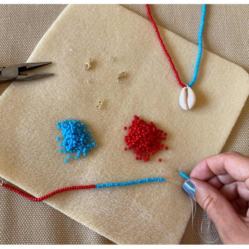 * 2 colores rocalla 8/0 en los colores elegidos. 1 paquete de 5 gramos de cada color.