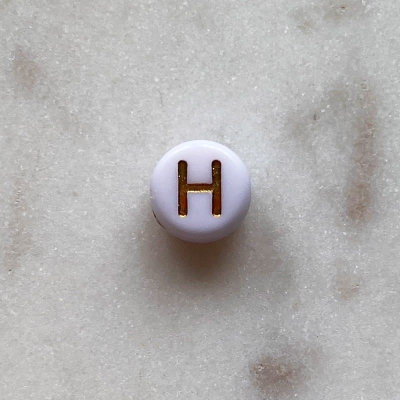 Cuenta de color dorado letra H. Diámetro 8mm. Taladro 1mm