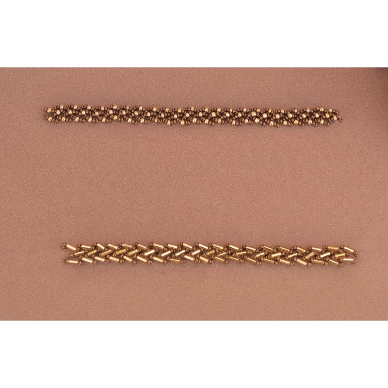 * 10 gramos de rocalla Miyuki (mostacilla) del tamaño 11/0 color oro viejo. Referencia 213-457.