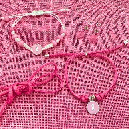 Entrepieza lazo cancer esmaltada en rosa con dos asas en plata de ley 925, fabricada en España.