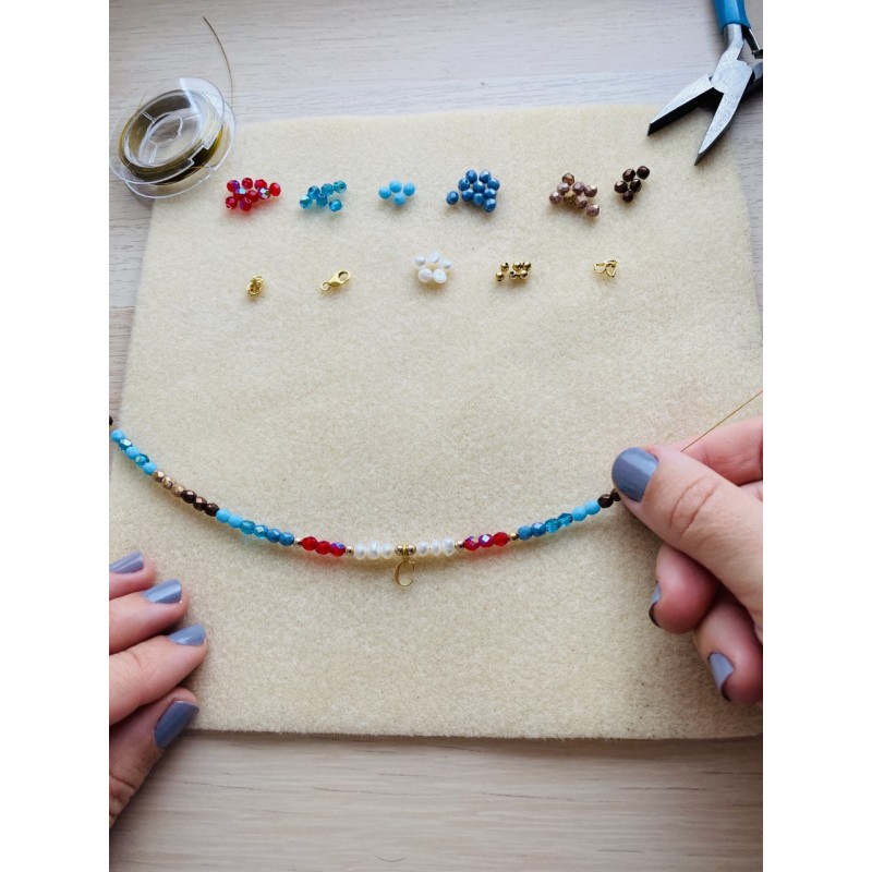 Disfruta creando a mano las gargantillas con cuentas, perlas y tu inicial en plata de ley 925 y baño oro de 18k. Quedan ideales pegaditas al cuello :)